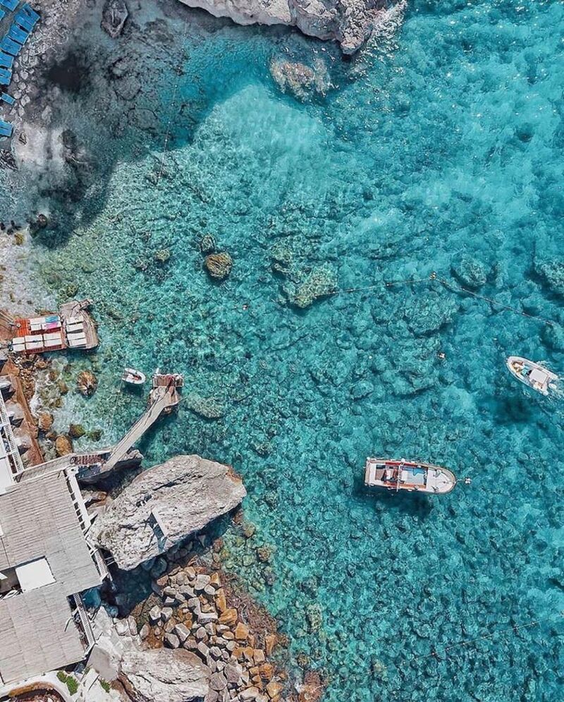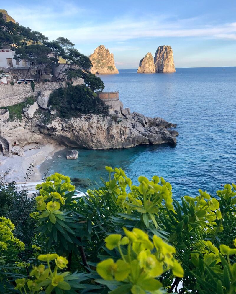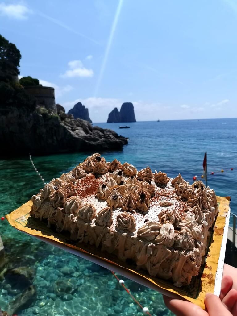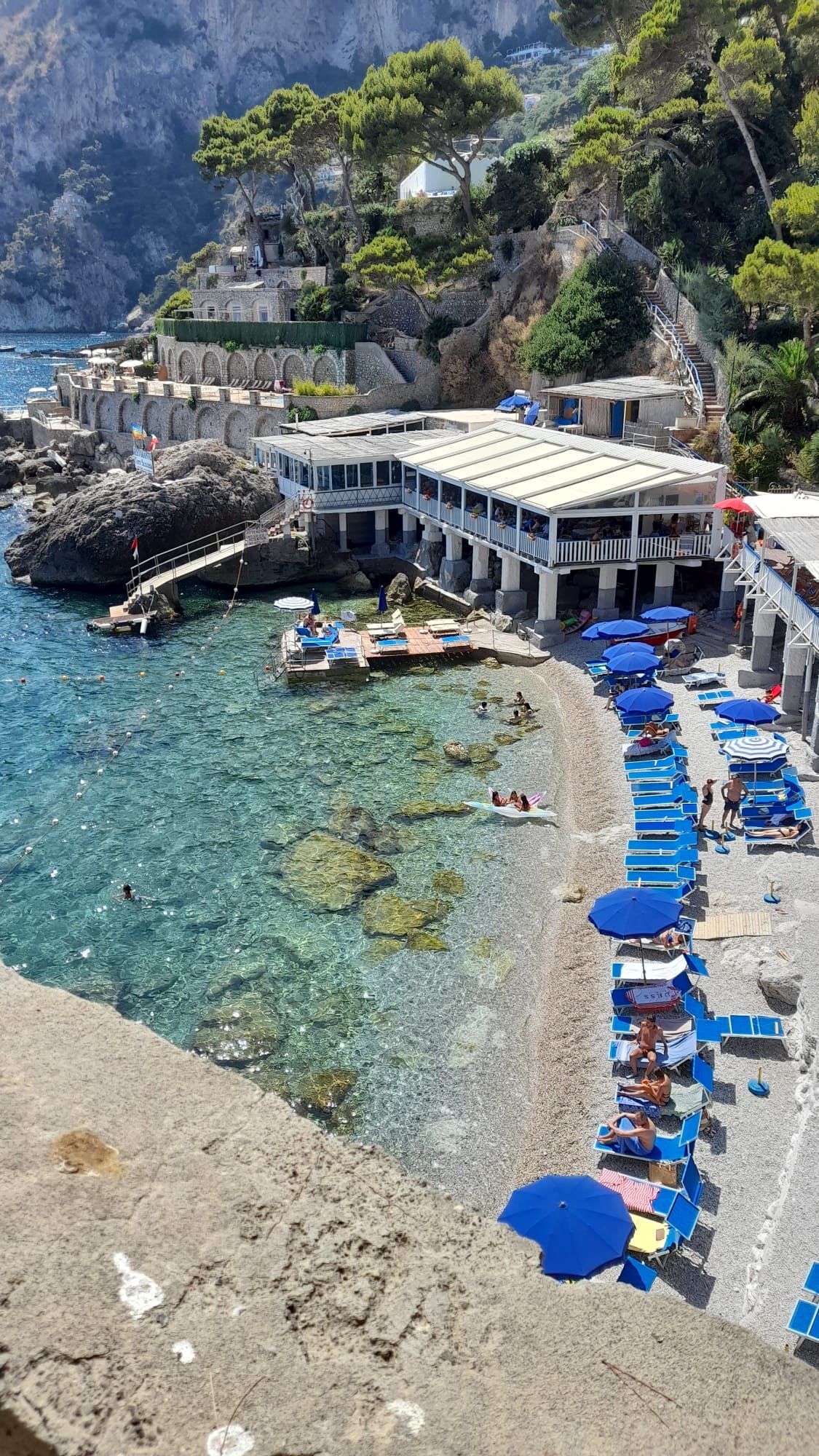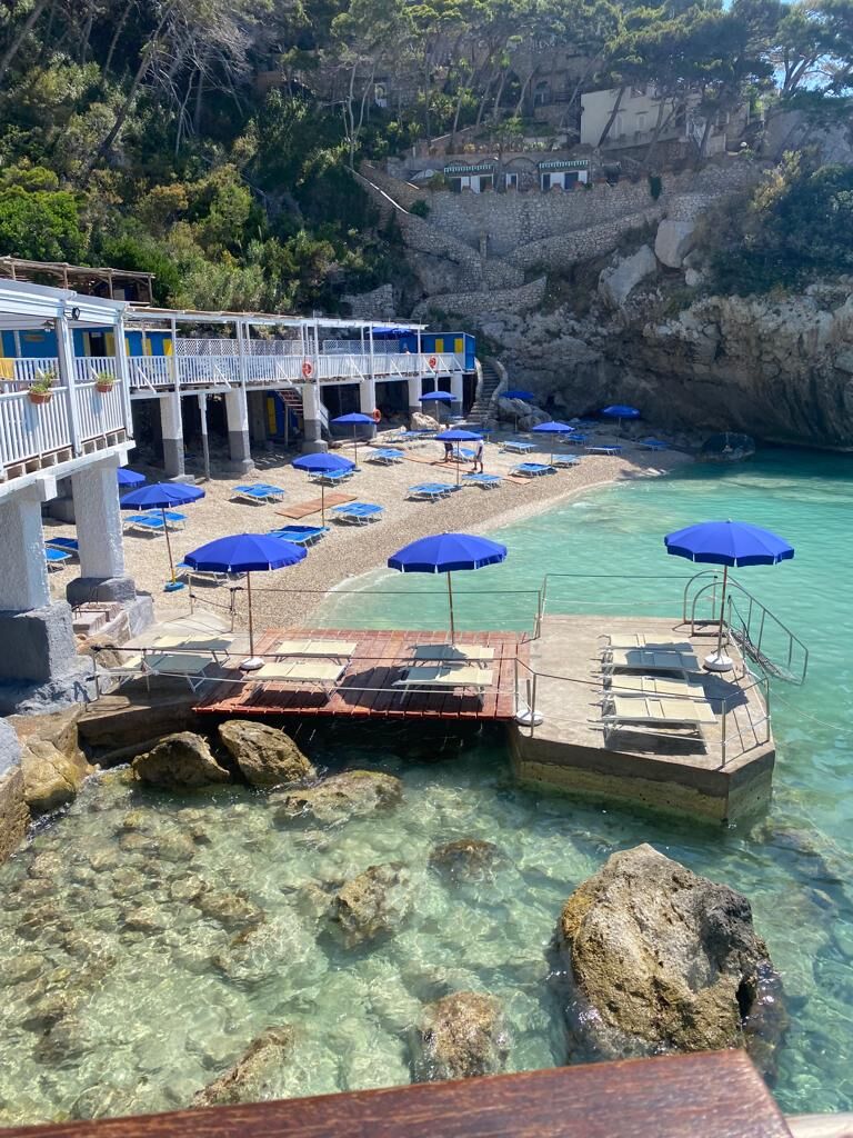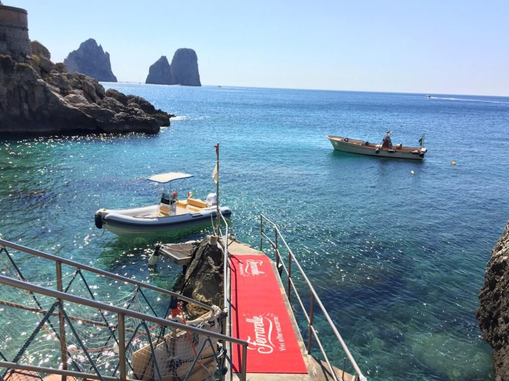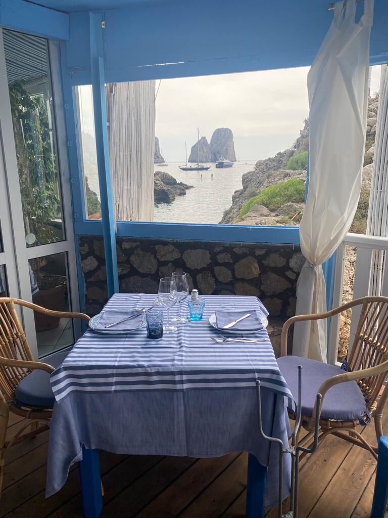 Qui la giornata scorre lenta e piacevole tra la tintarella, una nuotata con vista sui Faraglioni e il pranzo all'ombra del pergolato.